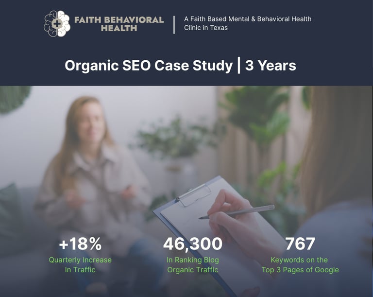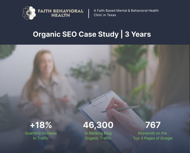 Through this strategy, Faith Behavioral Health secured page-one rankings for multiple high-value keywords, including reaching the #1 position for “delayed emotional response.” These rankings significantly boosted organic traffic and positioned the brand as a trusted authority in mental health resources, leading to measurable growth in site engagement and leads.