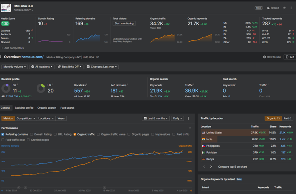 This strategy resulted in page-one rankings across multiple high-value healthcare keywords, with HMS now holding the #1 position for terms like “hypogonadism ICD 10,” “cataract surgery CPT code,” and “aetna timely filing limit 2024.” The improved rankings drove higher organic traffic, with top-performing pages now receiving hundreds of monthly visitors and positioning HMS as an authoritative source in healthcare billing and coding.