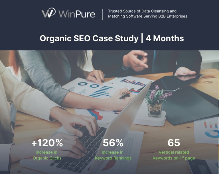 Winpure’s niche in data quality and migration tools faced stiff competition from larger SaaS providers. Despite a solid content library, their site struggled to capture page-one visibility for competitive terms like “CRM data migration” and “data quality framework,” limiting organic traffic and qualified leads.
